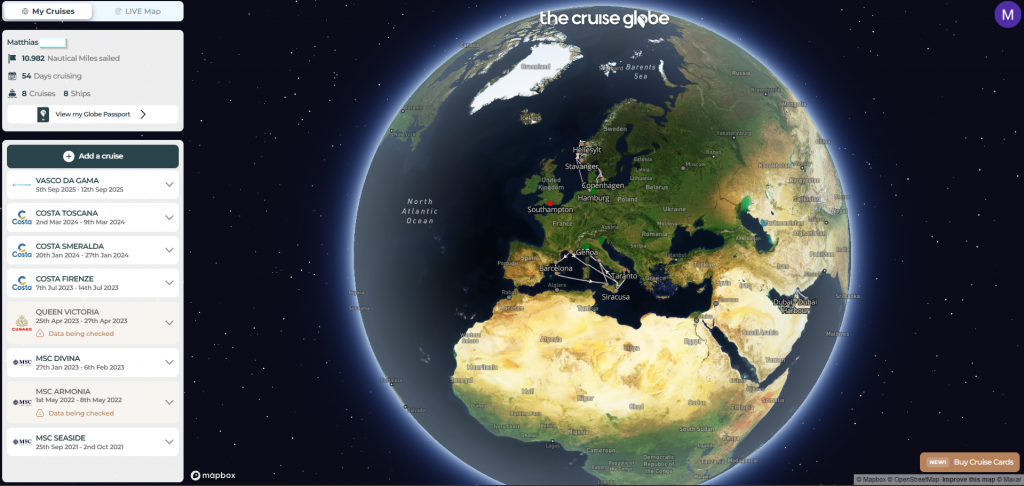 Fragen wie diese stellen sich viele Kreuzfahrtfans irgendwann. Manche führen dafür kleine Notizbücher, andere pflegen akribische Excel-Listen. Doch jetzt gibt es eine viel modernere Lösung: The Cruise Globe.